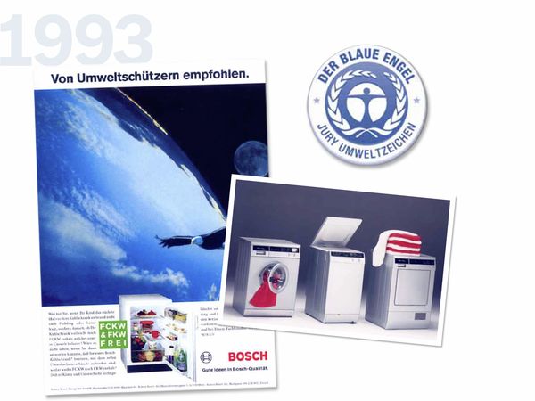 在1990年代,世界日益意識到永續環保的重要性。幾乎同一時間,博世已開始在此領域中建立標準並將其德國、希臘及西班牙境內的冰箱生產轉化成無CFC與FC之產品。