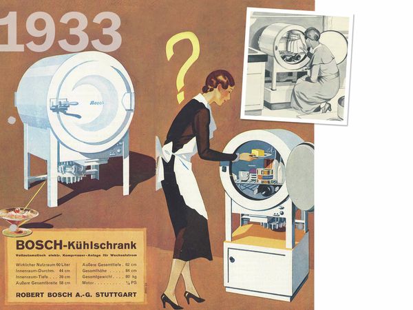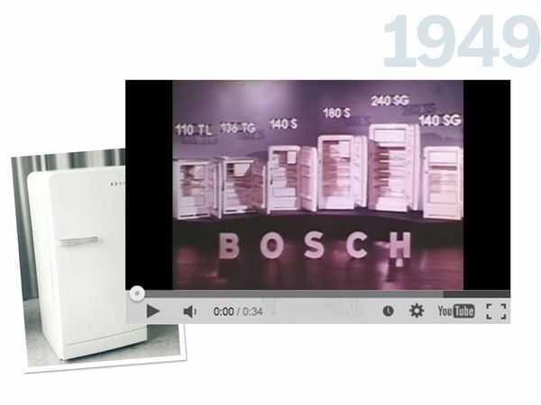 1933年,我們在德國推出了第一部家電。這款博世小型電冰箱只有60公升容量,並有著渾圓的外型。