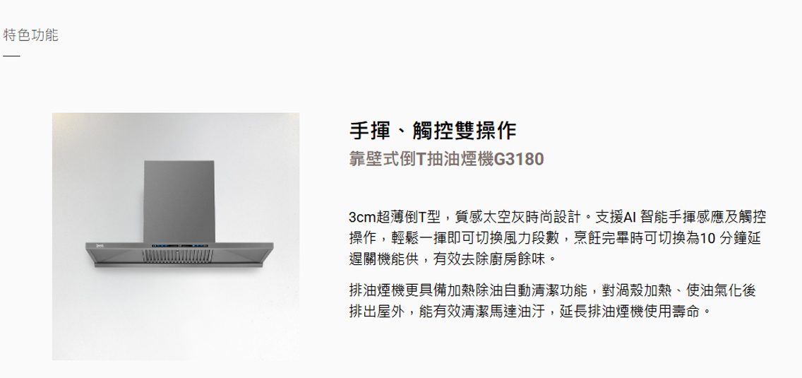 靠壁式倒T抽油煙機 - G3180