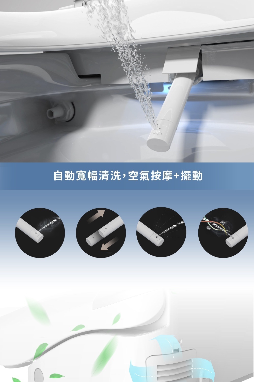 - SPA/按摩功能,抗菌噴嘴,自潔/可拆洗